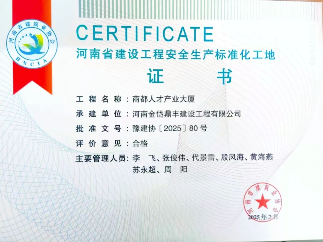 近日,河南省建筑業(yè)協(xié)會發(fā)布了《關(guān)于公布2025年度第一批河南省建設(shè)工程安全生產(chǎn)標(biāo)準(zhǔn)化工地名單的通知》,由公司監(jiān)理的商都人才產(chǎn)業(yè)大廈項(xiàng)目榮獲“河南省建設(shè)工程安全生產(chǎn)標(biāo)準(zhǔn)化工地”稱號,標(biāo)志著項(xiàng)目在安全生產(chǎn)、文明施工及標(biāo)準(zhǔn)化管理方面取得顯著成效,為鄭州市重點(diǎn)工程建設(shè)樹立了新標(biāo)桿。