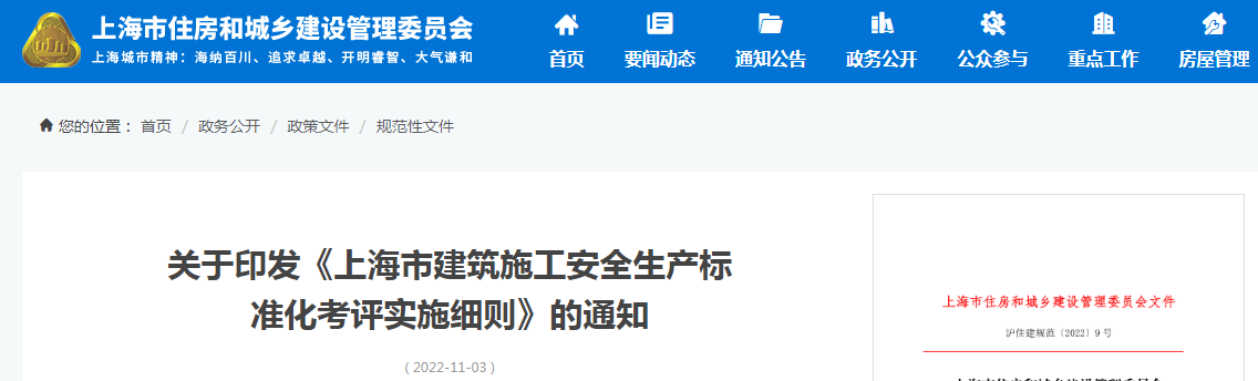關(guān)于印發(fā)《上海市建筑施工安全生產(chǎn)標(biāo)準(zhǔn)化考評(píng)實(shí)施細(xì)則》的通知