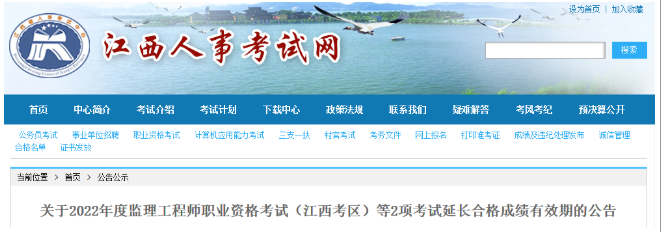 關于2022年度監(jiān)理工程師職業(yè)資格考試(江西考區(qū))等2項考試延長合格成績有效期的公告
