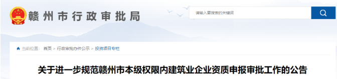 12月1日,贛州市行政審批局發(fā)布《關(guān)于進(jìn)一步規(guī)范贛州市本級權(quán)限內(nèi)建筑業(yè)企業(yè)資質(zhì)申報審批工作的公告》,提出: