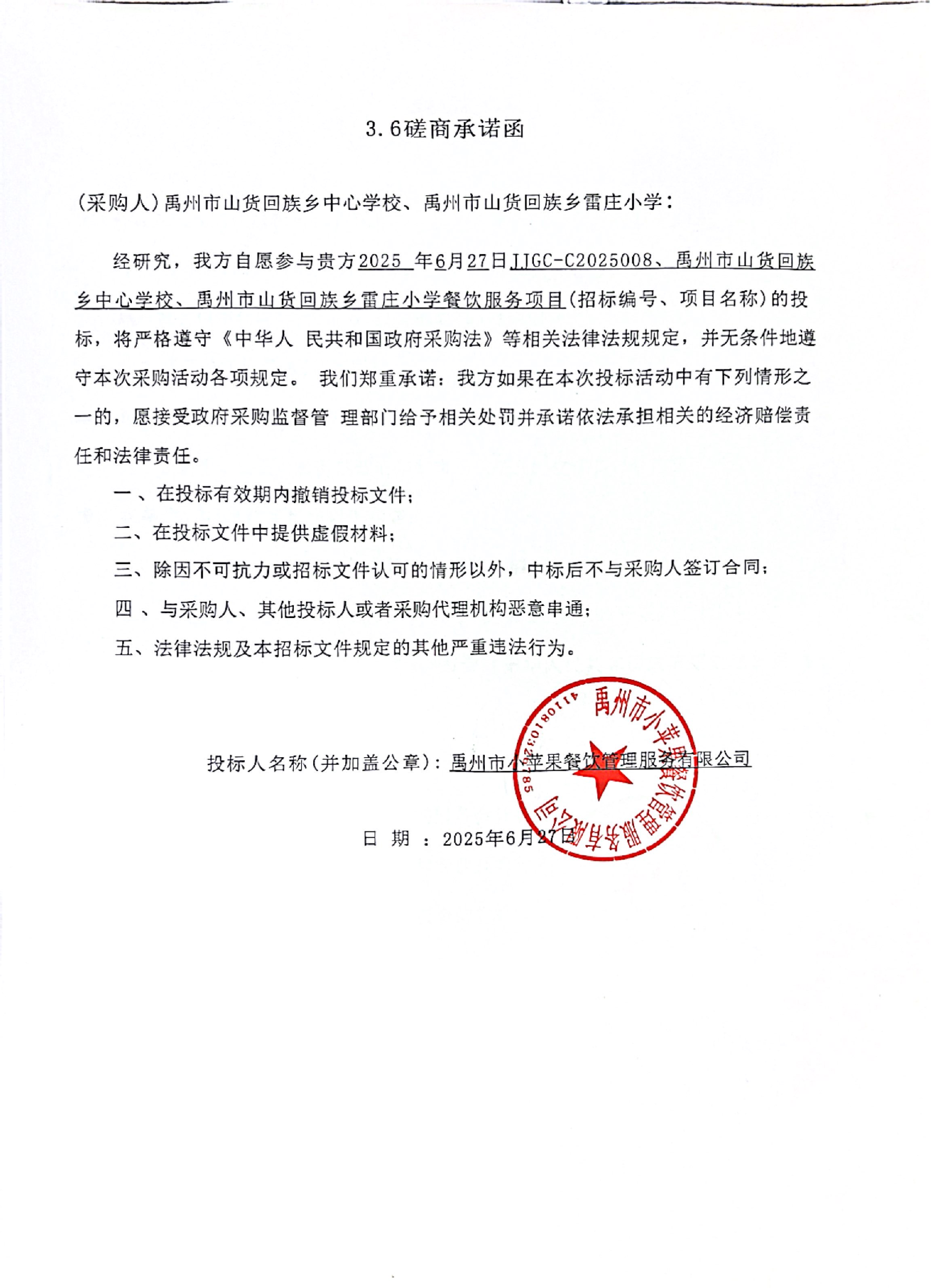 禹州市山貨回族鄉(xiāng)中心學校、禹州市山貨回族鄉(xiāng)雷莊小學餐飲服務項目