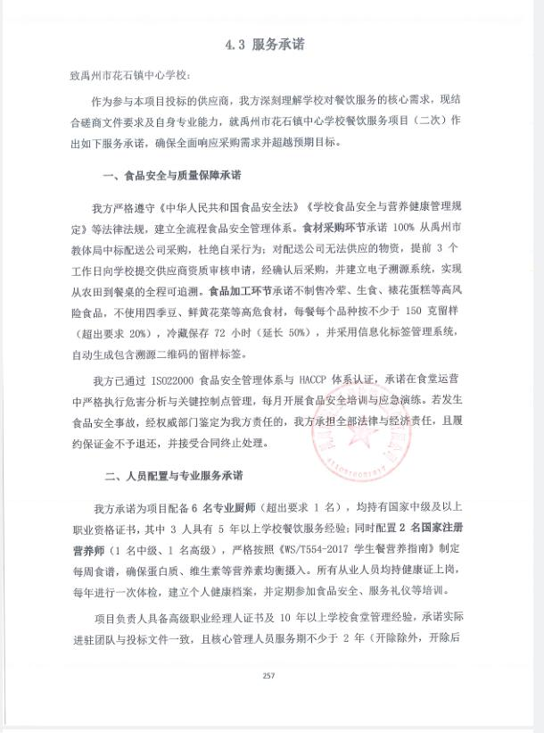 2 | 禹州市裕生禾餐飲管理服務有限公司 | 服務期1年(期滿考核,合格可以續(xù)約,最多可續(xù)約四次),每年對服務商考核,考核合格后,續(xù)約合同;考核不合格,自動終止合同。如合同執(zhí)行期間與國家、省市政策或規(guī)定不符,按國家、省市相應政策執(zhí)行 | 密封完好 |