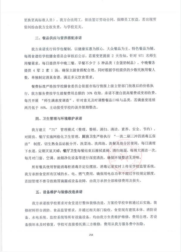 3 | 河南潤德餐飲管理有限公司 | 服務期1年(期滿考核,合格可以續(xù)約,最多可續(xù)約四次),每年對服務商考核,考核合格后,續(xù)約合同;考核不合格,自動終止合同。如合同執(zhí)行期間與國家、省市政策或規(guī)定不符,按國家、省市相應政策執(zhí)行 | 密封完好 |