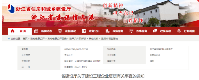 浙江省住建廳發(fā)布《省建設(shè)廳關(guān)于建設(shè)工程企業(yè)資質(zhì)有關(guān)事宜的通知》,明確: