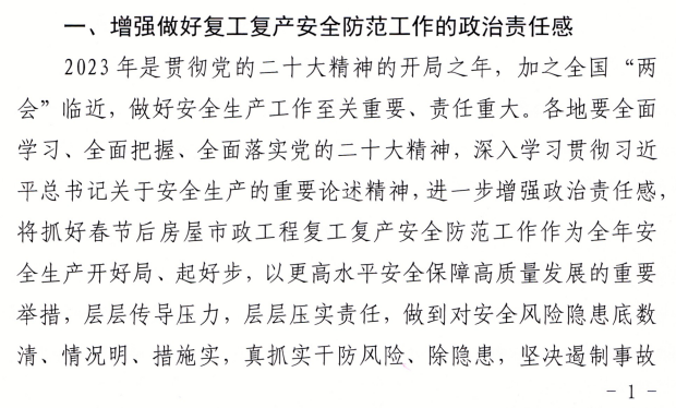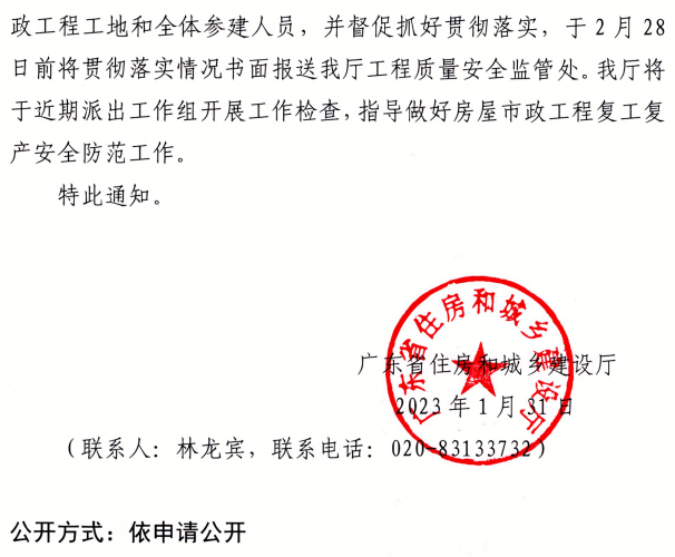 近日,廣東省住建廳發(fā)布《廣東住建廳關(guān)于做好2023年春節(jié)后房屋市政工程復(fù)工復(fù)產(chǎn)安全防范工作的通知》。