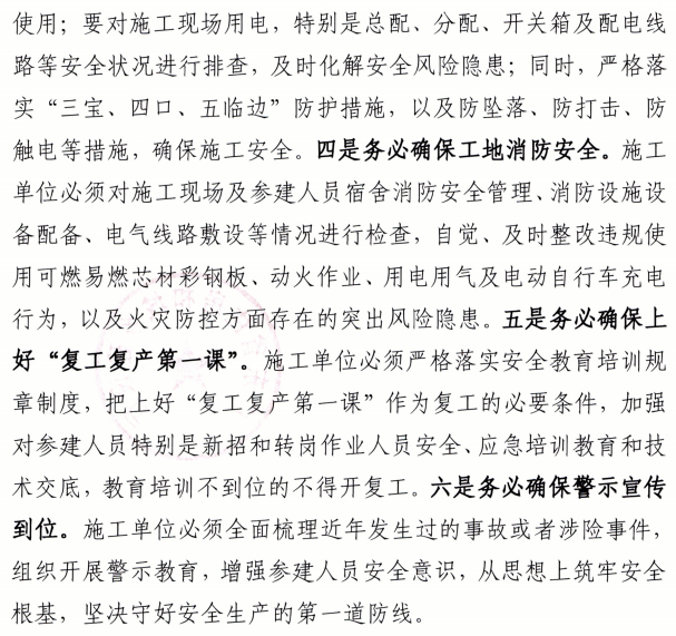 五是務(wù)必確保上好“復(fù)工復(fù)產(chǎn)第一課”。