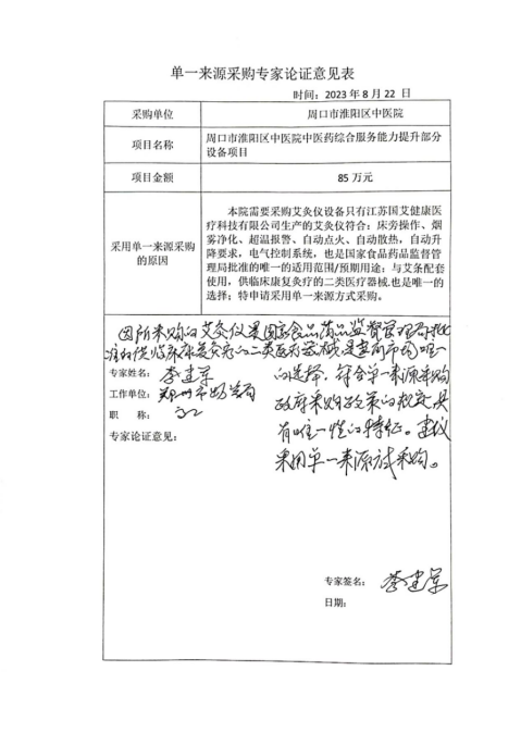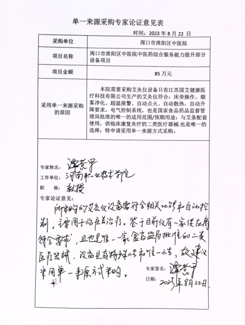 周口市淮陽區(qū)中醫(yī)院中醫(yī)藥綜合服務(wù)能力提升部分設(shè)備項目單一來源采購公示